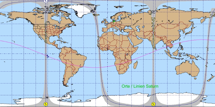 SATURN in der Welt als Horoskop Scheibe Kartographie-ORTEBUCH, als dein globales Horoskop