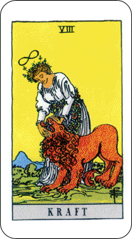 Andere Bedeutung der Karte: manche Decks haben hier die Justiz liegen, ägyptisch und manch andere passt hier besser die Kraft... mal sehen